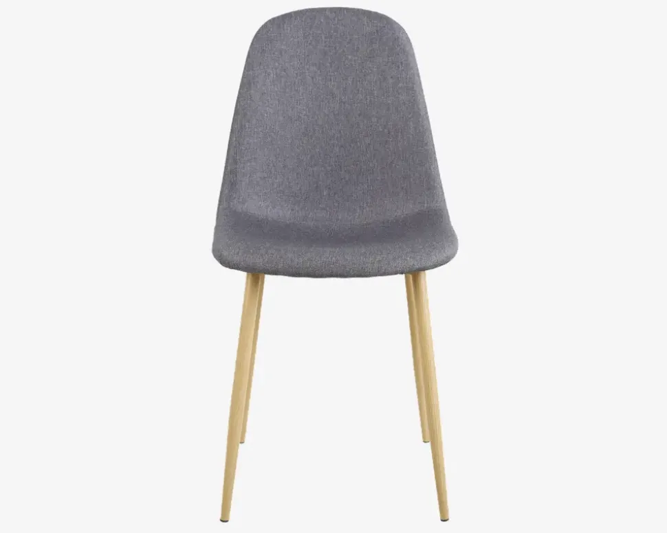 En lækker spisebordsstol med en god siddekomfort, som kan kombineres med en lang række forskellige borde. Stolen er fremstillet i et gråt betræk i 100% polyester, mens benene er i askefarvet stål. Betrækket er slidstærkt møbelstof i 100 % polyester, og den kraftige polstring giver spisestolen en behagelig og støttende siddekomfort som du vil glæde dig over. Stolen sælges i pakker af 4 stk.Stolen kræver ingen vedligeholdelse, og den rengøres med en klud vredet op i rent vand, husk at tørre efter med en tør klud. Benene er i stål og beklædt med askefarvet melamin, det betyder at de modstandsdygtige mod ridses og skrammes. Stolene levers usamlet, men de 4 ben monteres let. Stolen er også velegnet som køkkenstol.