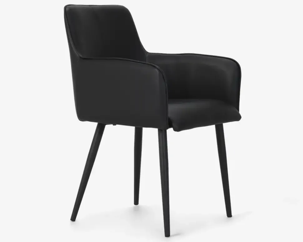 Spisebordsstol med armlæn i sort kunstlæder
