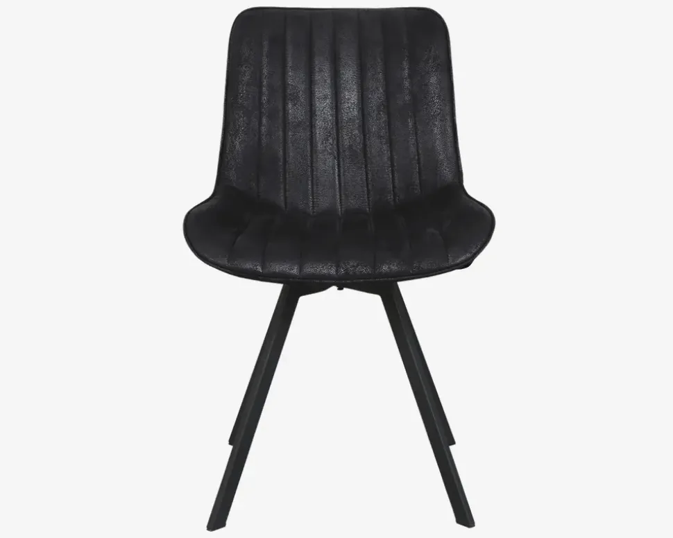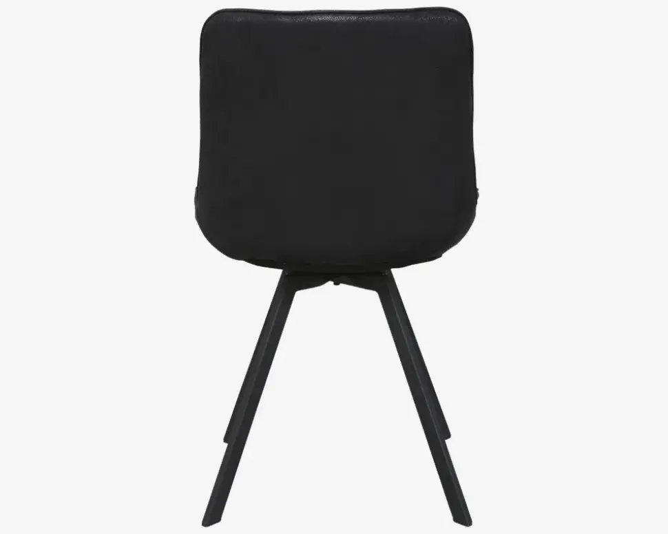 Her har du en flot spisebordsstol med god siddekomfort Stolene er fremstillet i sort kunstlæder, med et antikt præg, mens basen er i sort stål. Basen er en dreje base, som gøre stolen utrolig let at sætte sig i, og rejse sig fra selv om I sidder mange ved bordet. Basen har en “swing back” funktion, som betyder at stolen drejer tilbage til udgangspunktet når man slipper den, dette skal man naturligvis være opmærksom på, så man kan undgå eventuelle fald skader, fordi sædet ikke er der hvor man regner med.Spisestolen kræver ingen vedligeholdelse, og rengøres med en klud vredet om i rent vand. Du bør være opmærksom når du støvsuger, så du undgår at ridse stellet. Sælges i pakker af 2 stk. og leveres usamlet, base skal påmonteres