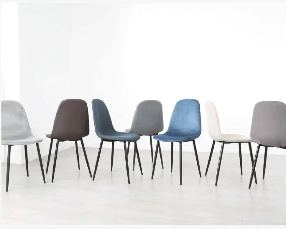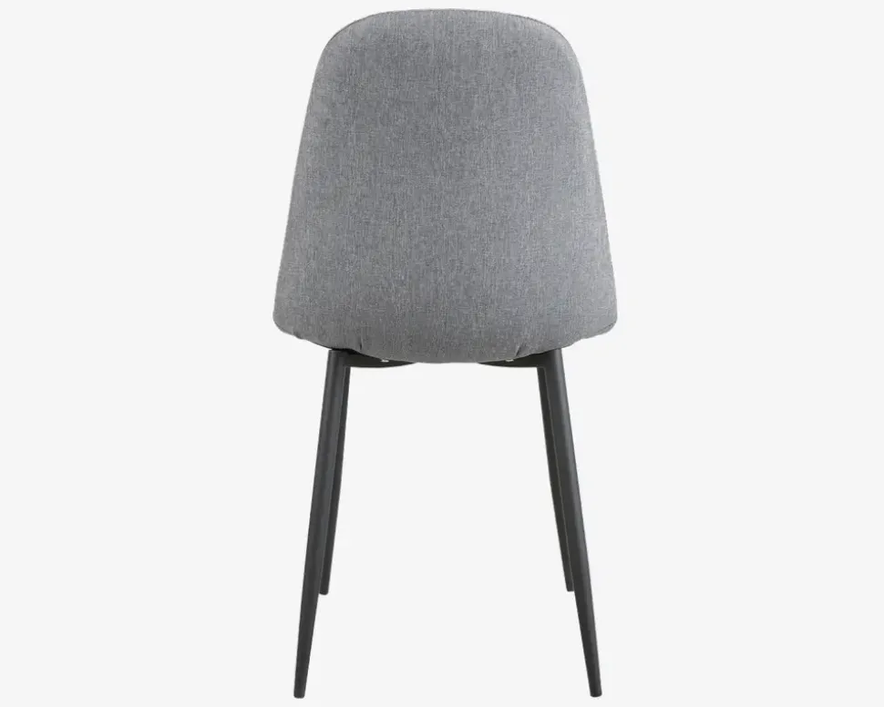 En lækker spisebordsstol med en god siddekomfort, som kan kombineres med en lang række forskellige borde. Stolen er fremstillet i et gråt betræk i 100% polyester, mens benene er i sort pulverlakeret stål. Betrækket er slidstærkt møbelstof i 100 % polyester, og den kraftige polstring giver spisestolen en behagelig og støttende siddekomfort som du vil glæde dig over. Stolen sælges i pakker af 4 stk.Stolen kræver ingen vedligeholdelse, og den rengøres med en klud vredet op i rent vand, husk at tørre efter med en tør klud. Benene er pulverlakeret stål, som giver en hård overflade, men vær forsigtig når du støvsuger og lignende, da benene kan ridses. Spisebordsstolene levers usamlet, men de 4 ben monteres let.