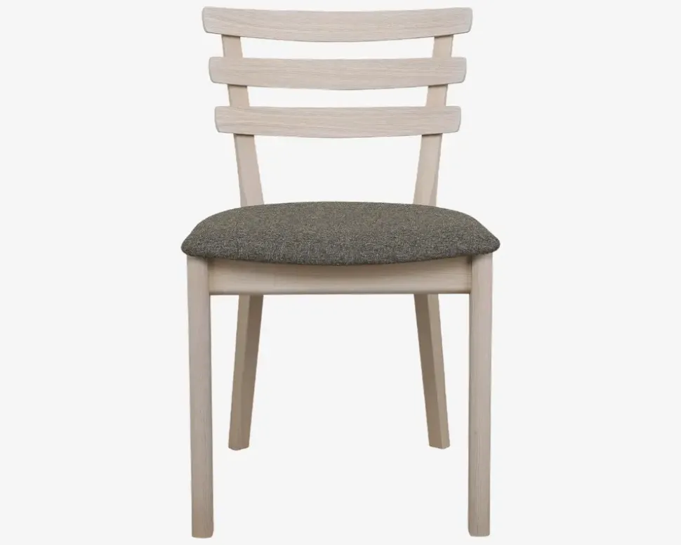 Spisebordsstol i elegant og klassisk design, produceret i Danmark. Stolen er fremstillet med et stel i massiv hvid olieret eg, mens den formspændte ryg er i formspændt finer. Det kraftige møbelstof på sædet vil holde i mange år selv om du bruger stolen ofte. Spisebordsstolens størrelse er perfekt tilpasset Skovby spisebord SM118, lille og elegant, men fortsat med en god siddekomfort. Stolen er hvid olieret, men efterfølgende er den lakeret 2 gange med en mat lak, dette gøres for at undgå sorte fingre på stole ryggens øverste tvær pind. Det betyder også at den vi fremstå lysere i træet end det olierede spisebord, men dette vil udjævne sige, idet øjeblik du giver spisebordet hvid olie første gang. Stolen kræver ikke vedligeholdelse, den skal blot aftørres med en fugtig klud efter behov. Denne Spisestol er produceret af Skovby Møbelfabrik, som har produceret spisestue møbler i Danmark siden 1933. Med en stol fra Skovby Møbelfabrik får du et møbel i høj kvalitet, som du kan glæde dig over i mange år. Stolene er fremstillet af udvalgt kvalitetstræ, og forarbejdet med respekt for de gamle håndværksmæssige værdier. Du får her en stol som er testet i forhold til internationale standarder, og endda godkendt til brug i institutioner og på restauranter.