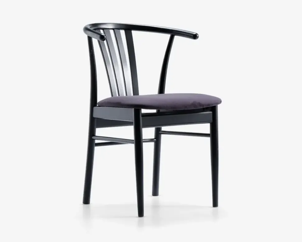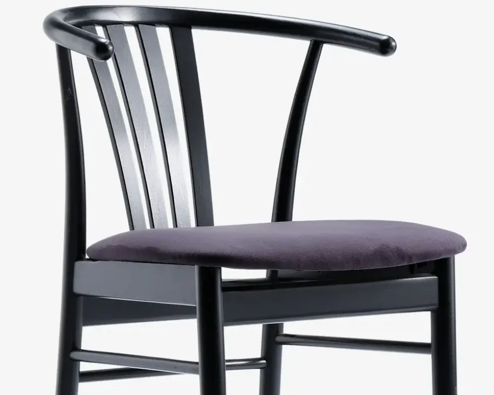 Denne flotte og klassiske spisebordsstol kan kombineres med mange forskellige spiseborde, uanset om du ønsker det mere rå look, eller det helt moderne, vil stolen tilpasse sig i forhold til den stilart den kombineres med.Spisestolen er fremstillet i massiv sortlakeret bøg, men den findes også i vores sortiment i ubehandlet bøg, samt i massiv ubehandlet eg. Sædet på denne stol er fremstillet i slidstærkt møbelstof, som giver en behagelig siddekomfort, selv om du sidder ved spisebordet i længere tid. Hvis du ønsker et mere eksklusivt udseende på stolen, har du mulighed for at vælge den med sort læderlook på sædet i stedet for.