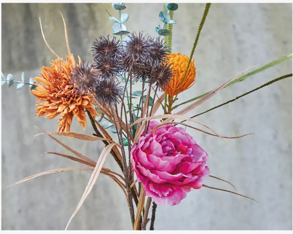 Elegant blomsterstilk med en smuk pæon. Stilken er lavet af plastik og måler 71 cm i højden. Den er omhyggeligt udformet for at efterligne den naturlige form af en ægte blomst. Kan bruges enkeltvis eller sammen med andre stilke fra vores sortiment.