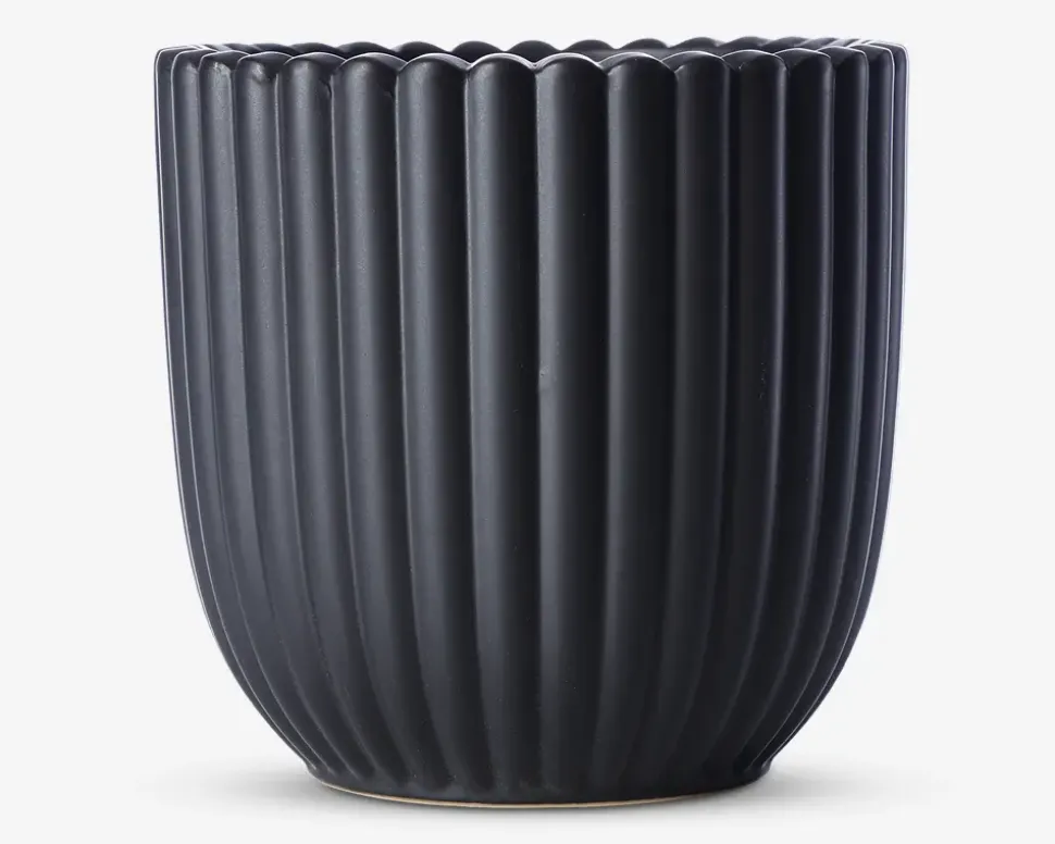 Urtepotteskjuler i serien Nobel i mat sort keramik. Skjuleren har et enkelt design, der passer ind i både moderne og klassiske hjem. Perfekt til at fremhæve dine planter i vindueskarmen, på hylden eller bordet.Vær opmærksom på at der kan dannes kondens under potten efter påfyldning af vand, og dette kan skade underlaget. Vær derfor ekstra opmærksom på dette ved sarte og skrøbelige overflader.
