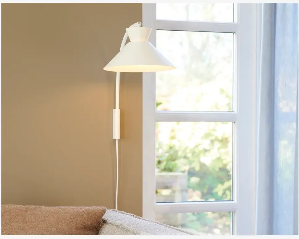 Væglampen Dial der med sit enkle design passer ind i de fleste hjem. Lampen er perfekt som sengelampe eller som læselampe ved sofaen, da den er justerbar. Findes i flere varianter.• Mål i cm: H.40 x B.25• Farve: hvid • Materiale: metal• Fatning: E27, Max 40W• Ledningslængde: 150 cm • IP20• Ekskl. Lyskilde