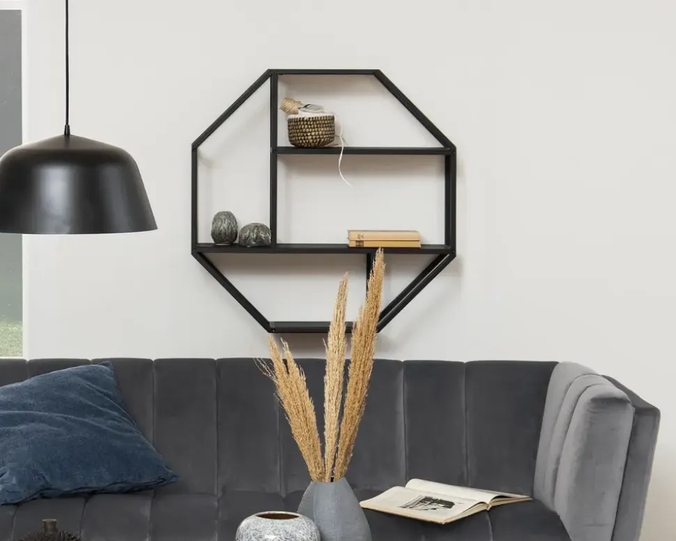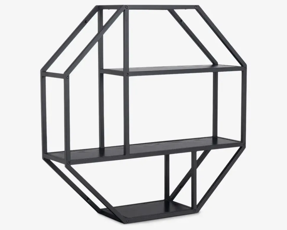 Smart, enkel og moderne 8-kantet vægreol til ophæng. Er let og elegant og med sit asymmetriske udtryk kan den rumme mange ting på en spændende måde. Reolen er lavet med et sort lakeret metalstel, som gør at reolen kan bære det meste. Hylder er i sort ask kunstfiner. Reolen leveres usamlet men samles nemt.I denne serie kan der fås mange forskellige møbler, som gør det muligt at møblere de fleste rum i hjemmet med lige netop denne serie. Serien består af meget ”lette” møbler som kan give et enkelt og flot udtryk overalt i hjemmet. Flere typer sofaborde, tv-borde, reoler, serveringsvogne, skriveborde. Med denne serie er det nemt at indrette sig hyggeligt og praktisk på samme tid.• Enkel og moderne 8-kantet vægreol• Sort ask kunstfiner hylder• Sortlakeret metalstel• Asymmetrisk udtryk• Leveres usamlet, men samles nemt• Mål i cm. B.77 x H. 77 x D.20