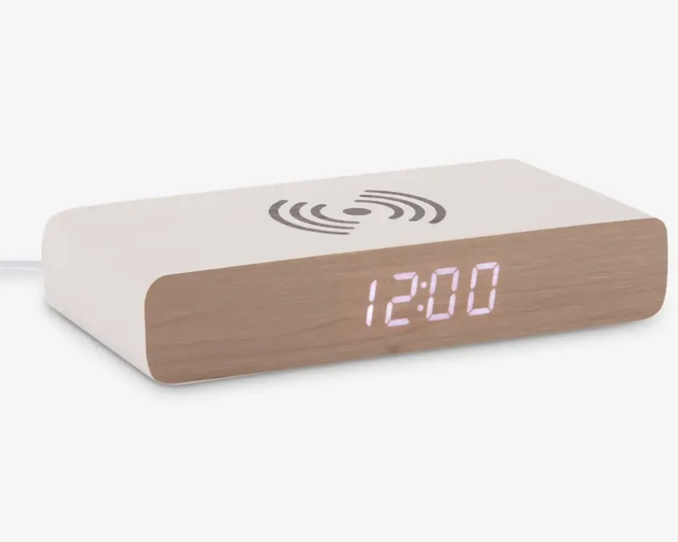 Vækkeur med trådløst opladning der kombinere funktionalitet og moderne design. Med den integreret trådløse opladningsfunktion kan du nemt oplade din mobil uden brug af kabler. Perfekt til natbordet eller kontoret, hvor det både fungerer som en praktisk alarm og en oplader. Inkl. USB kabel.Ekskl. 3x LR1130 batterier.